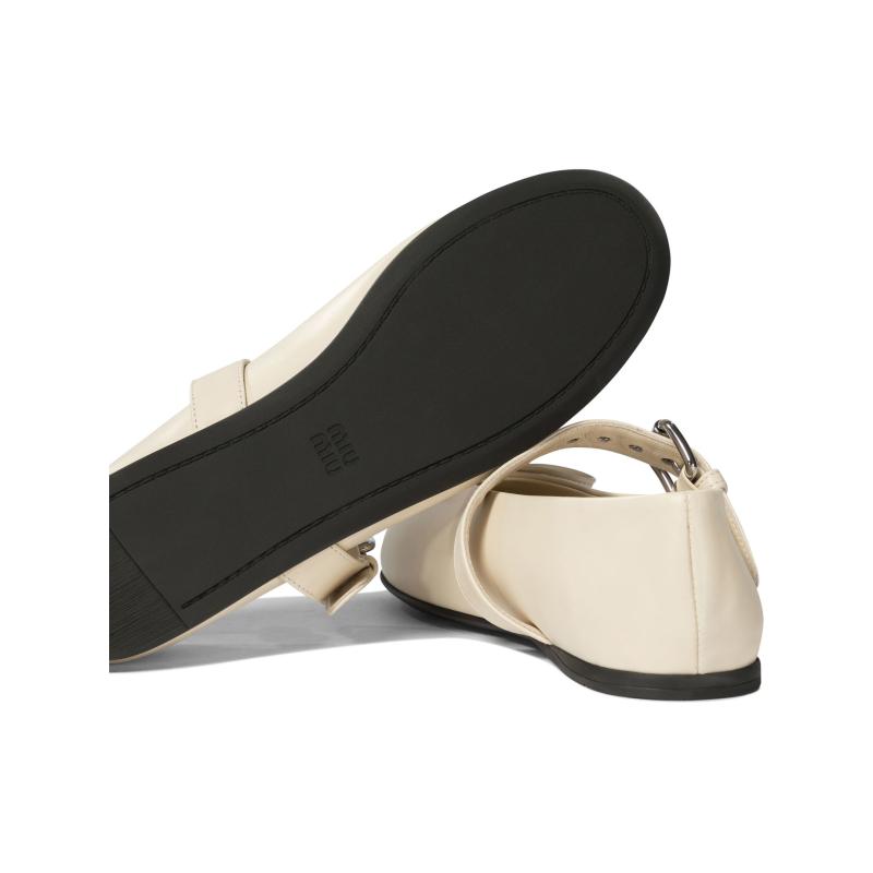 • 미우미우 여성 아이보리 가죽 메리제인 플랫