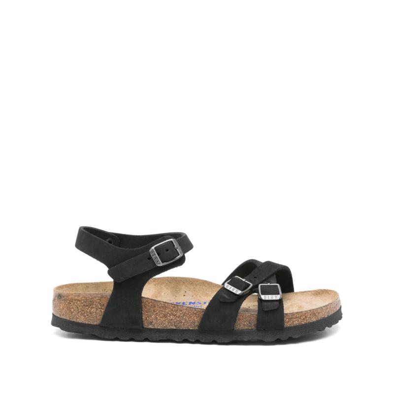 • 버켄스탁 여성 블랙 플랫 샌들