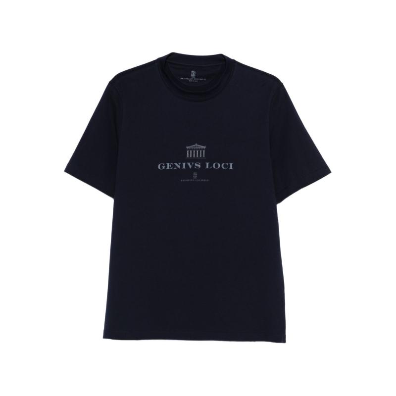 • 브루넬로 쿠치넬리 남성 네이비 반팔 티셔츠