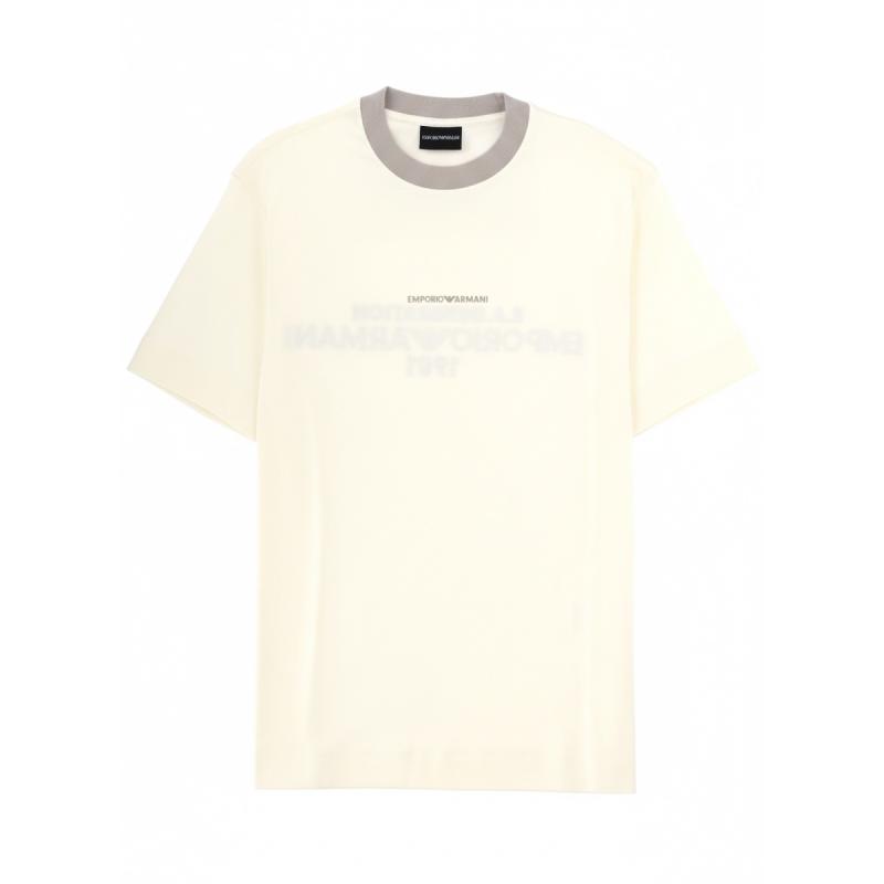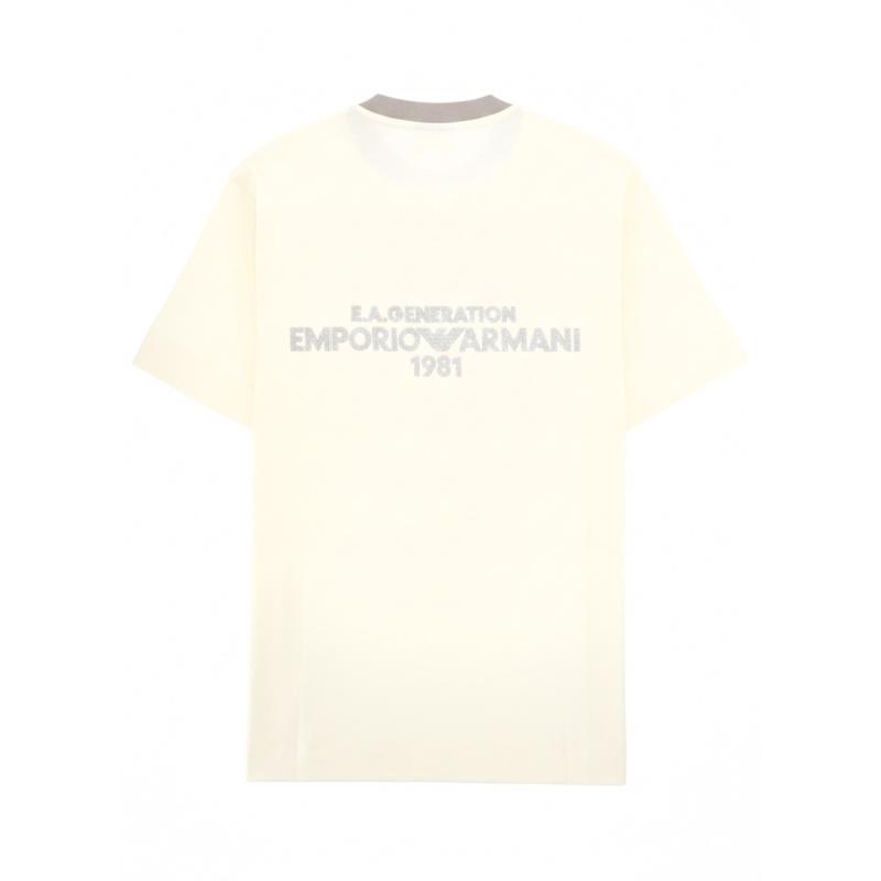 • 엠포리오 아르마니 남성 아이보리 자수 반팔 티셔츠