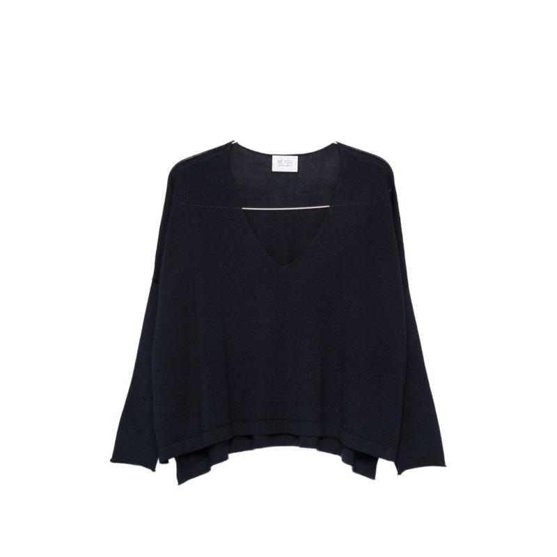 • 비유 여성 네이비 V넥 긴팔니트